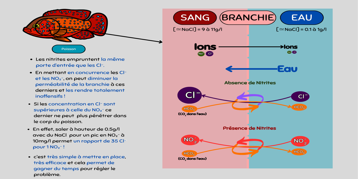 La toxicité des Nitrites est directement liée à la concentration en ions Chlorures (CL⁻).