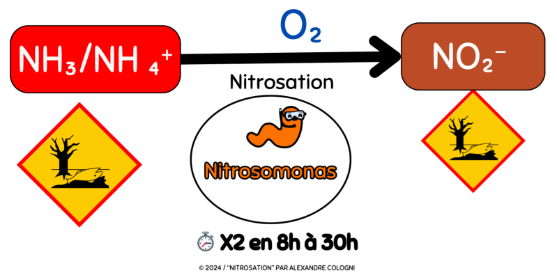 En milieu aquatique, le genre bactérien principalement responsable de la Nitrosation est Nitrosomonas.